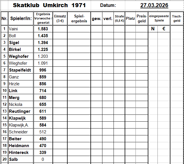 Setzliste neu